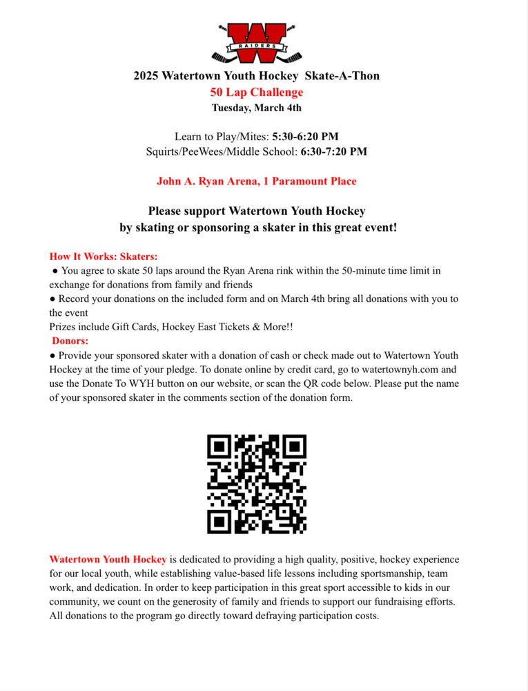 Watertown Youth Hockey is a volunteer-run, non-profit organization offering travel ice hockey and skating/hockey development programs for children in and around Watertown, MA. We are an athlete-centered organization that places the needs of children first. Our goal is to provide the children in our program with a meaningful, enjoyable, challenging and safe hockey experience.
